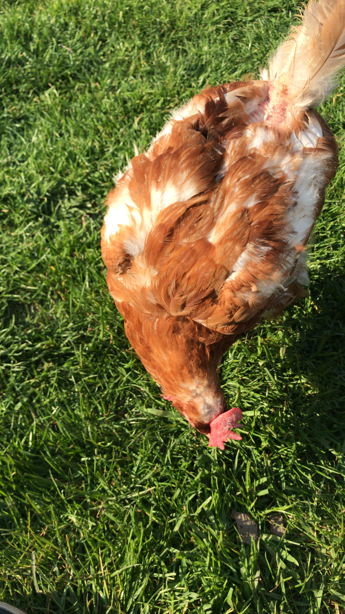 Unter den fünf geretteten Legehennen kam auch Dori zu uns – deutlich gezeichnet von ihrem Leben in der Bodenhaltung. Ihr Körper war so erschöpft, dass sie nicht mehr in der Lage war, weiter Eier zu legen. Trotz intensiver Calciumgaben kam es beinahe zu einer lebensbedrohlichen Legenot. Schließlich wurde die Eierproduktion tierärztlich mithilfe eines Hormonpräparates stillgelegt.